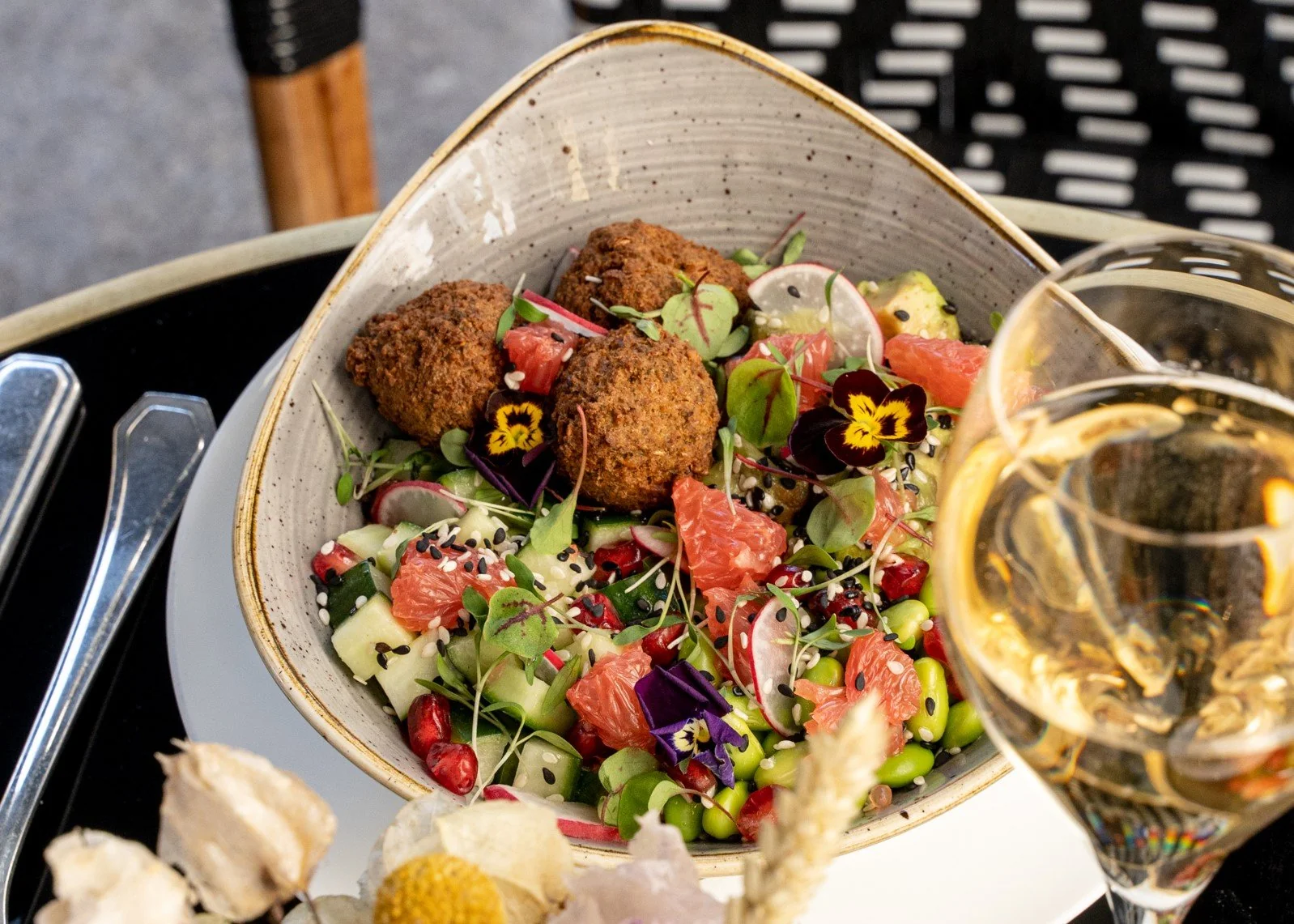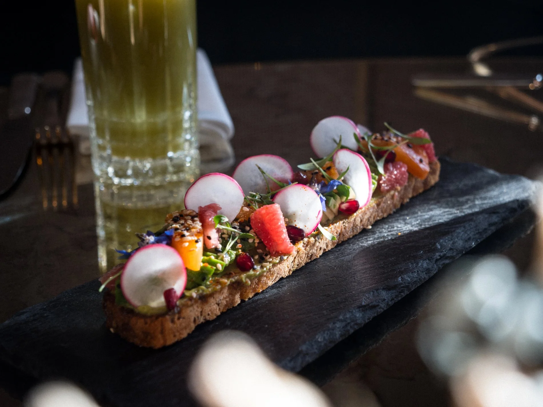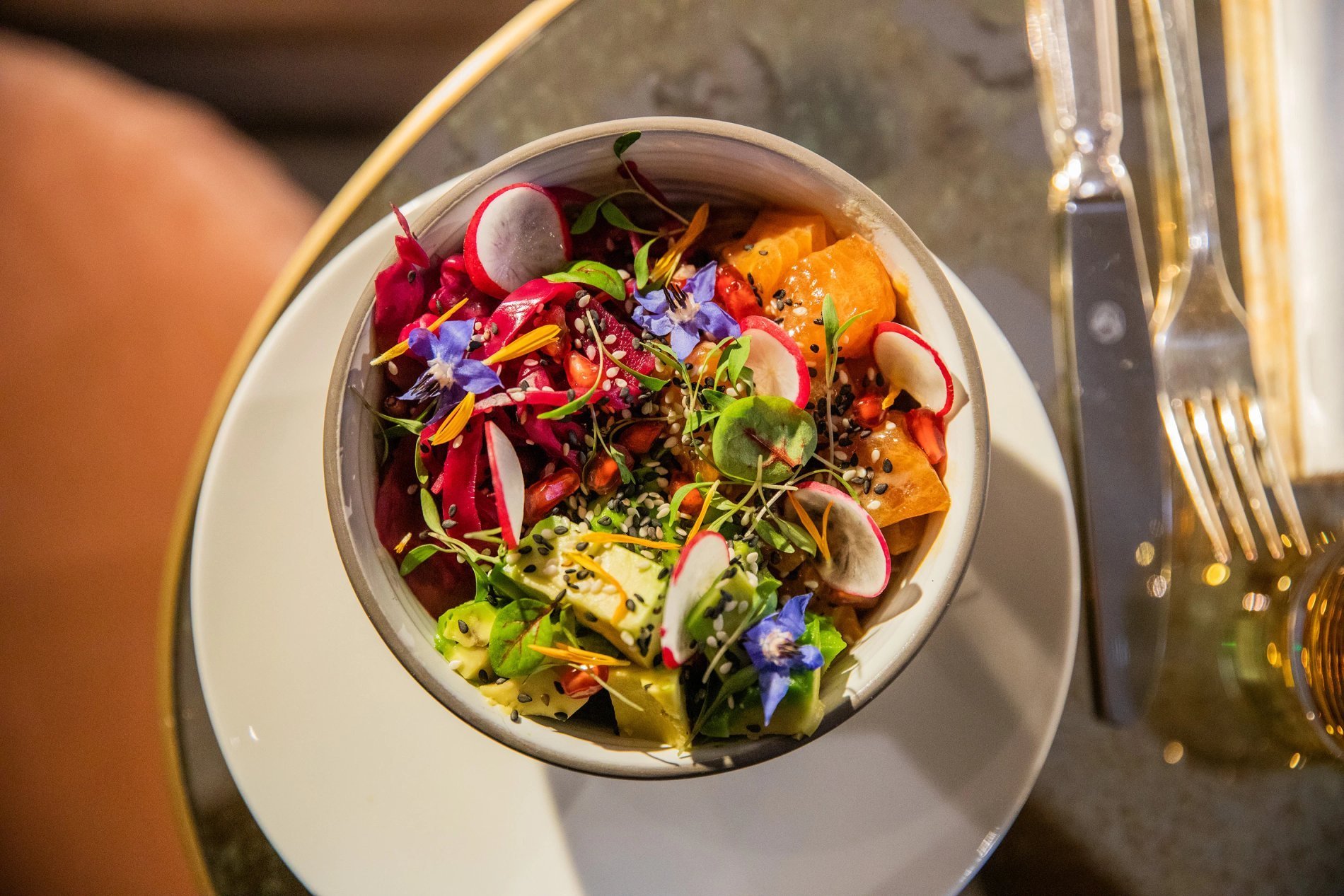 O chef Maxime Raab está empenhado em oferecer várias opções vegetarianas ou veganas no cardápio do Café 52 para atender a diferentes dietas e reduzir o consumo de carne e peixe.